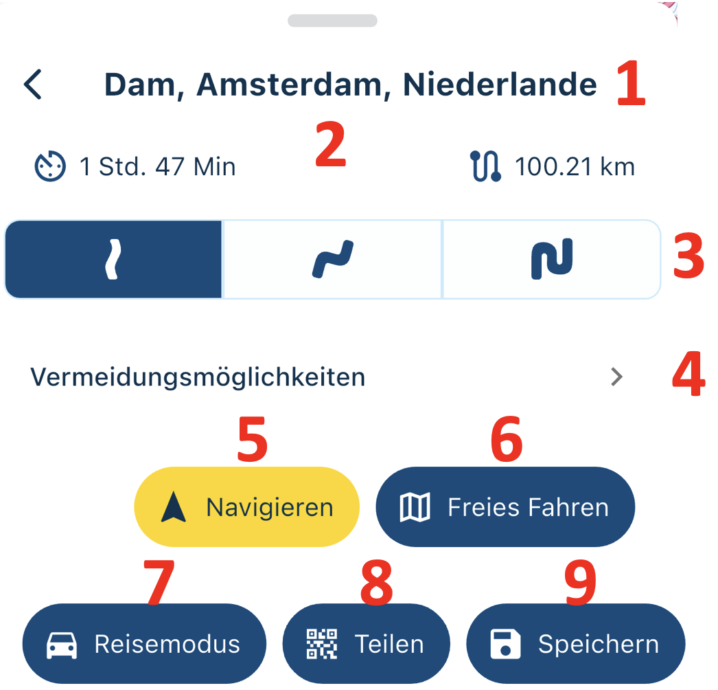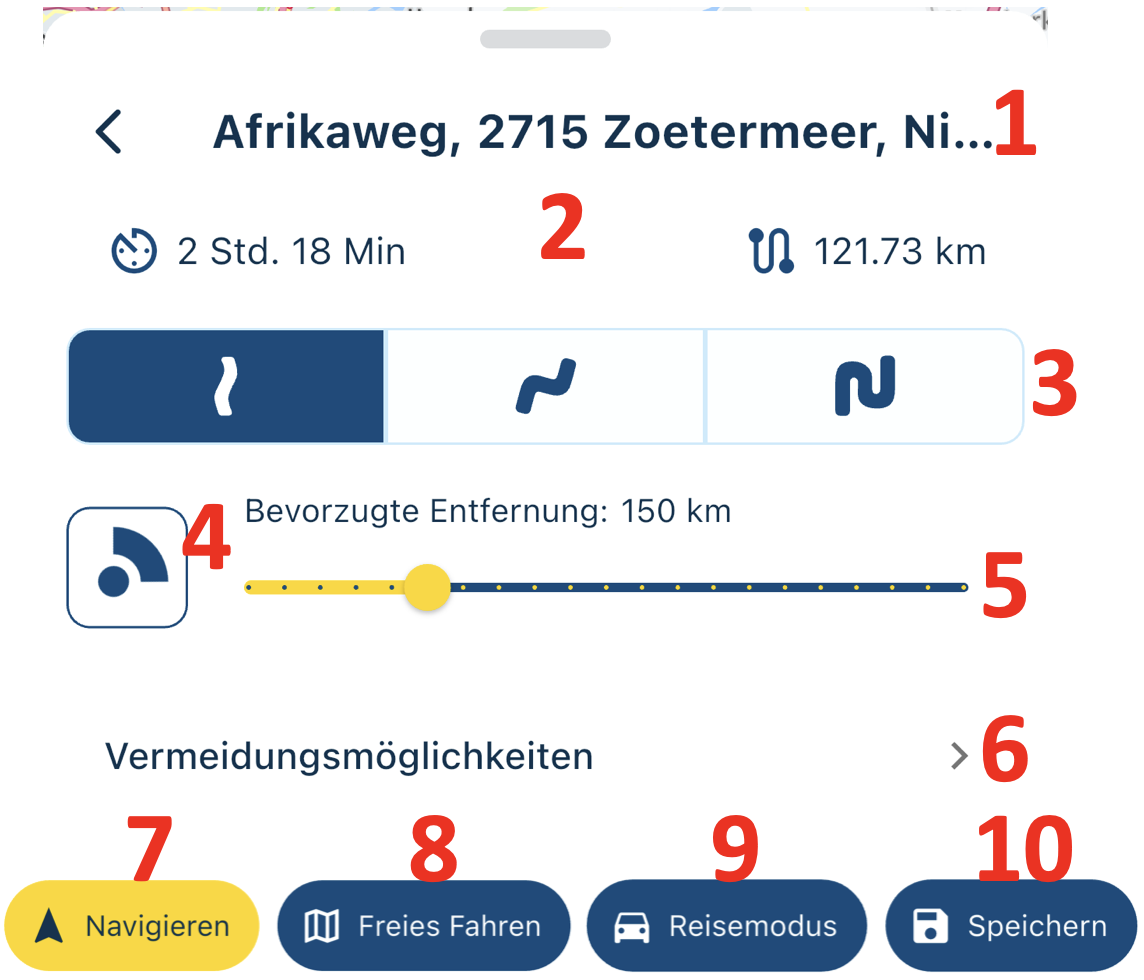 7. Reisemodus: Bevor die Route generiert oder gestartet wird, können Sie den Reisemodus anpassen;